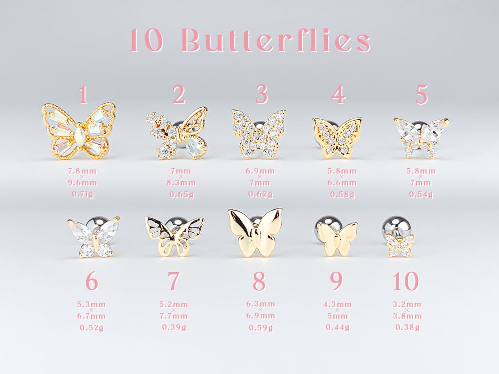 10種類のバタフライモチーフを詰め込んだ、華やかで上品なピアスセット♪