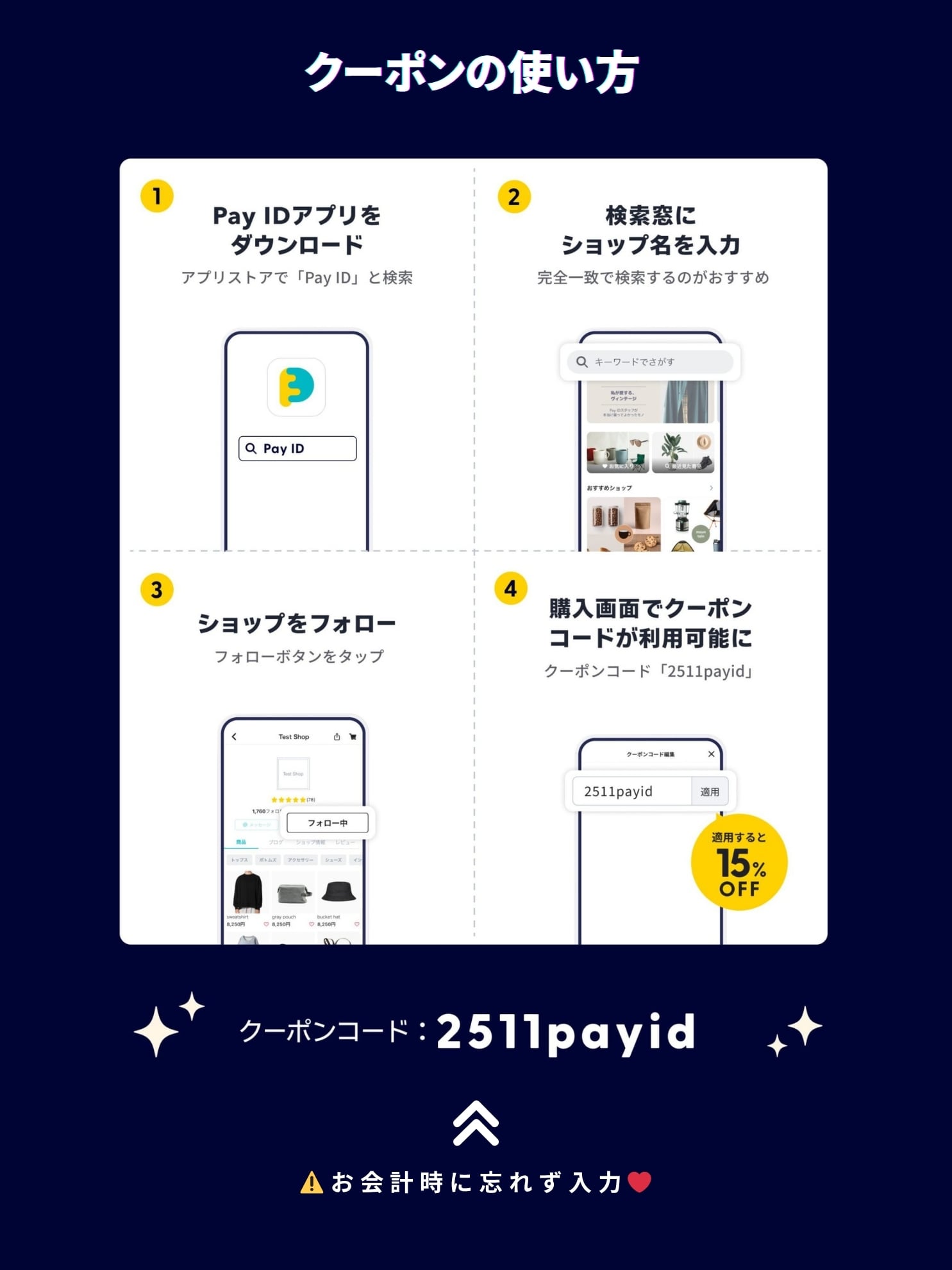 ※「Pay IDアプリ」上で、ショップをフォローすることが条件になります。