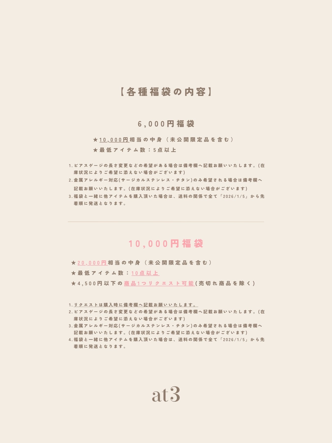 ※福袋と一緒に他アイテムを購入頂いた場合は、送料の関係で全て「2026/1/5」から順次発送となります。