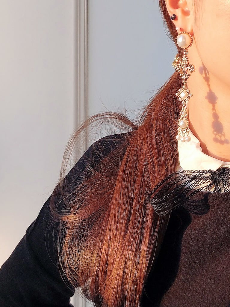 9.5cmと長さがありますが、7.77グラムと見た目よりも軽い素材で作られているので耳に付けても疲れにくく今期おススメのアイテムです♡