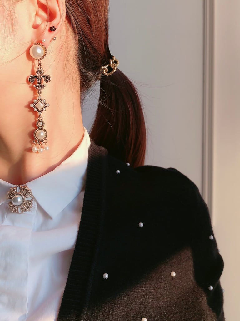 十八世紀頃のヨーロッパをイメージしたアンティークなデザインが、個性と華やかな耳元を演出してくれる作品です。