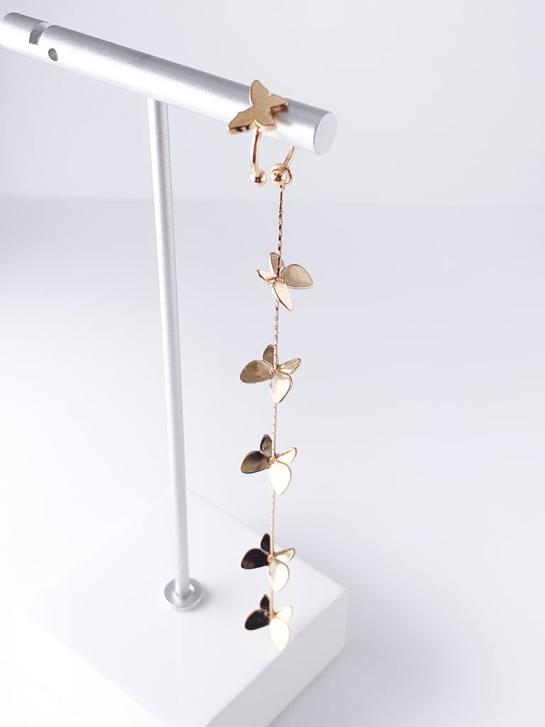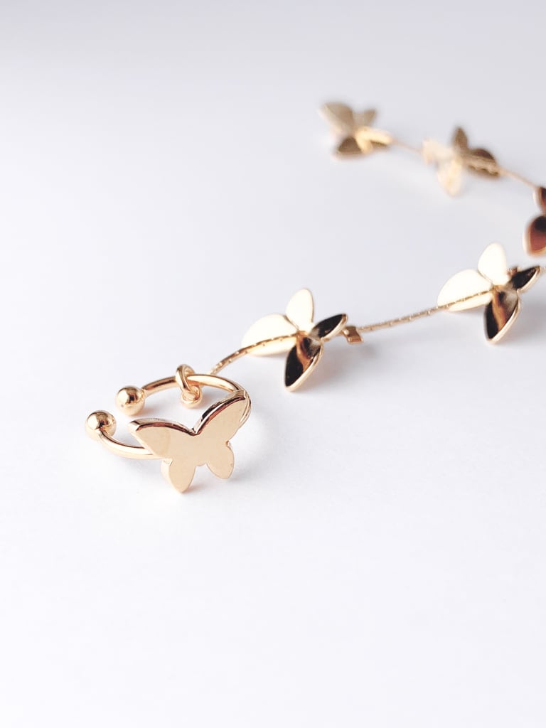 繊細なゴールドチェーンに蝶々が揺れるデザインが可愛くエレガントな印象を与える作品です^^