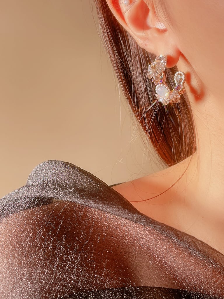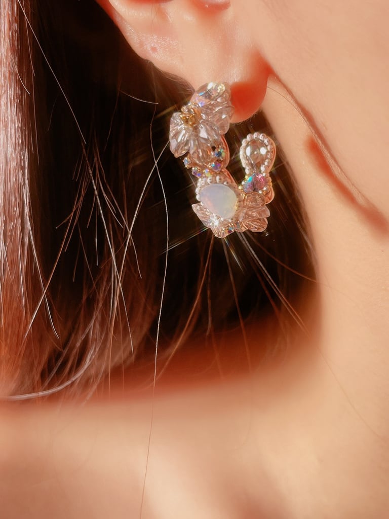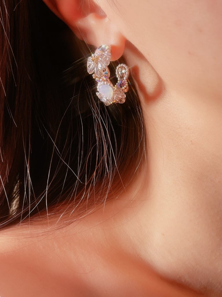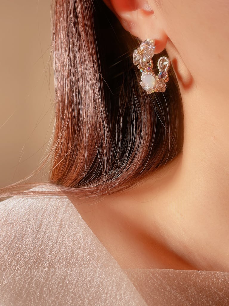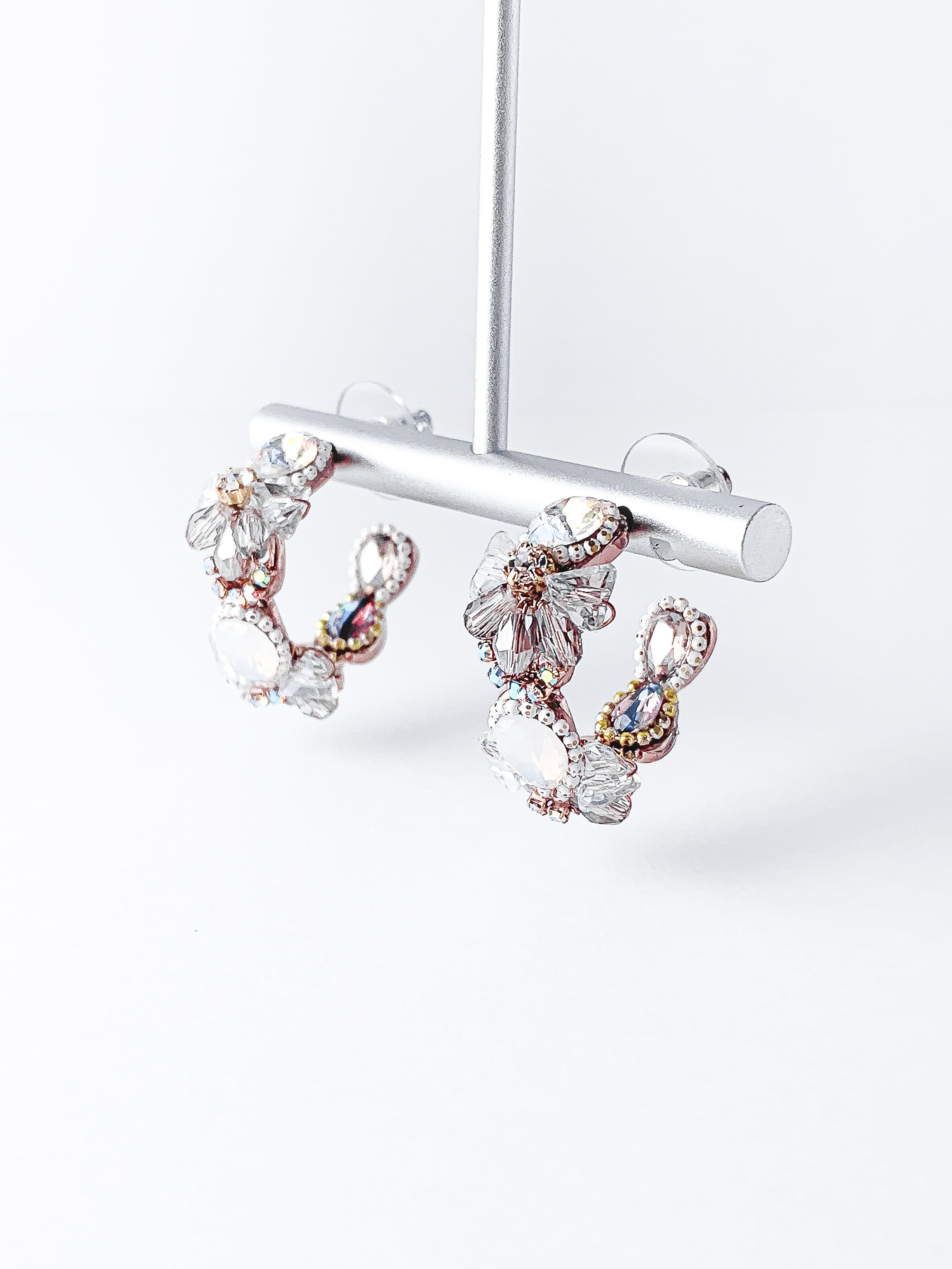 9種の異なるクリスタルを円形に配置しただけでなく、斜め正面から見えるリングの内側にも細工施した華やかな印象を与える作品です♪