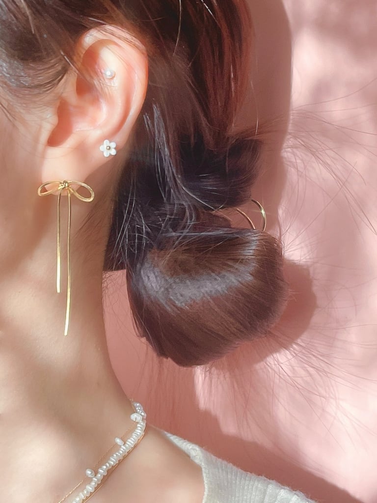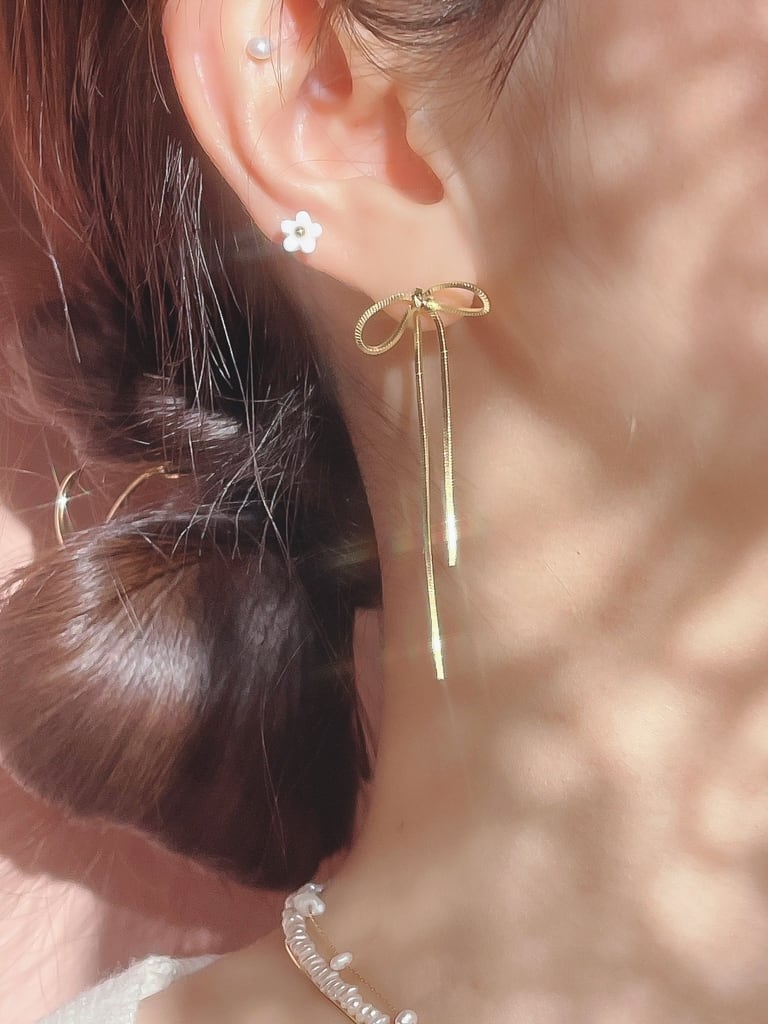 at3のテーマでもある「結ぶ」をイメージしたもので、自分自身をプレゼントのような特別な気持ちにしてくれるラブリーなピアスです♡