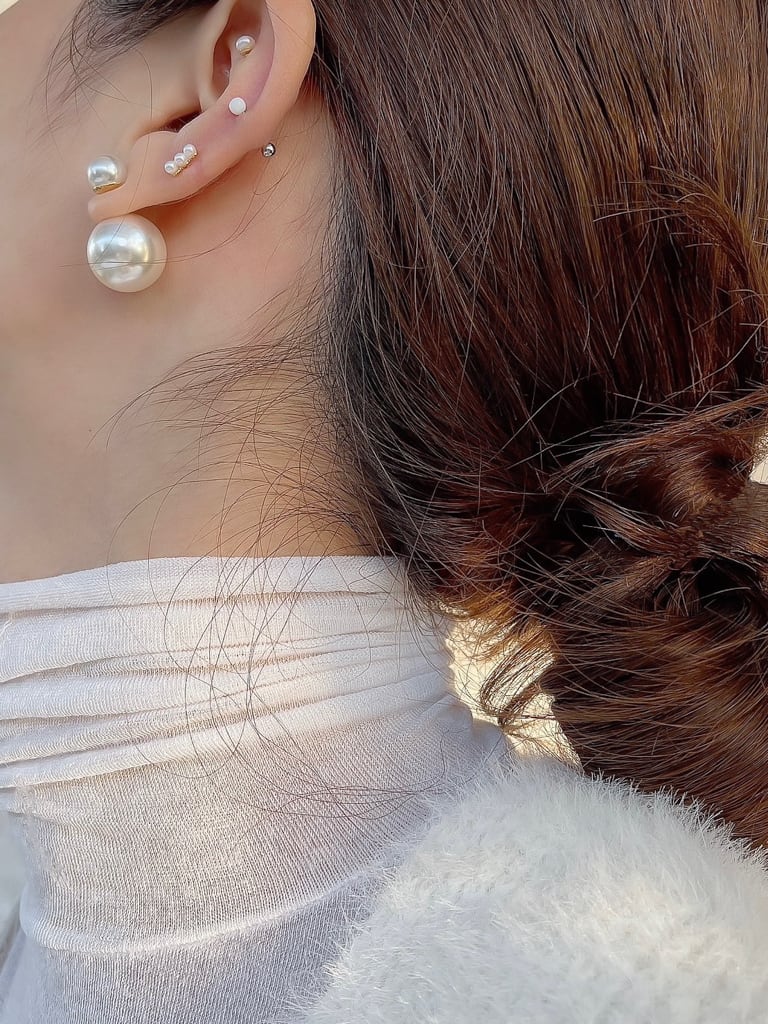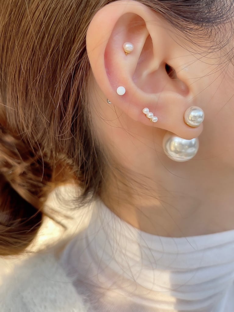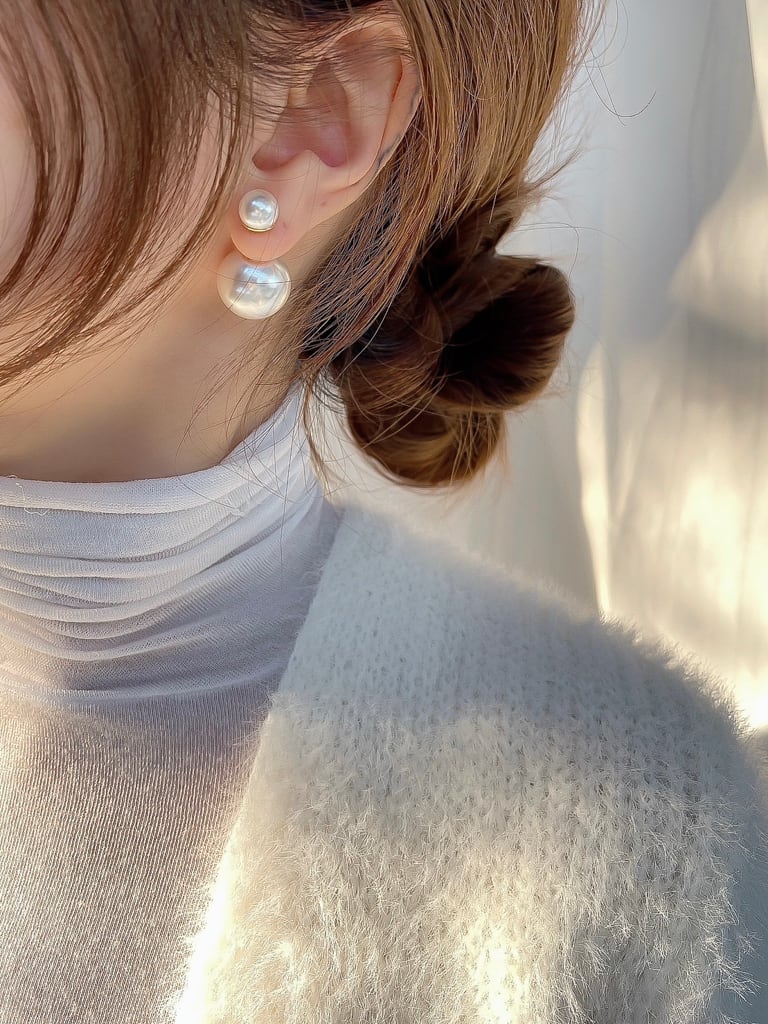 大小のパールで耳を挟むシンプルで可愛いアイテムです♪