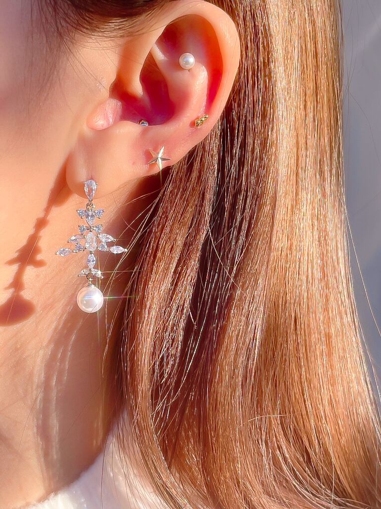 クリスマスツリーをイメージしたヘッドにパールを付けた耳元をラブリーロマンティック魅せてくれる作品です♪