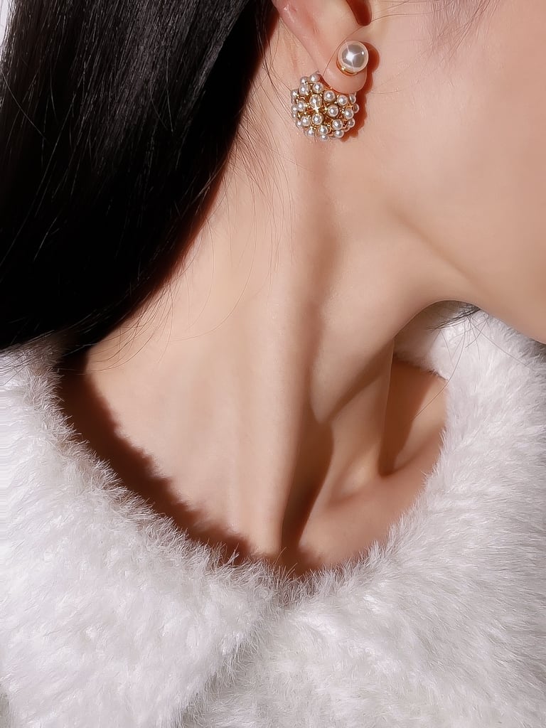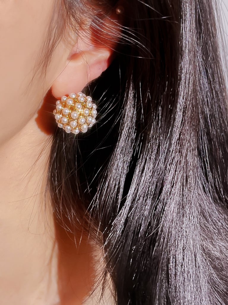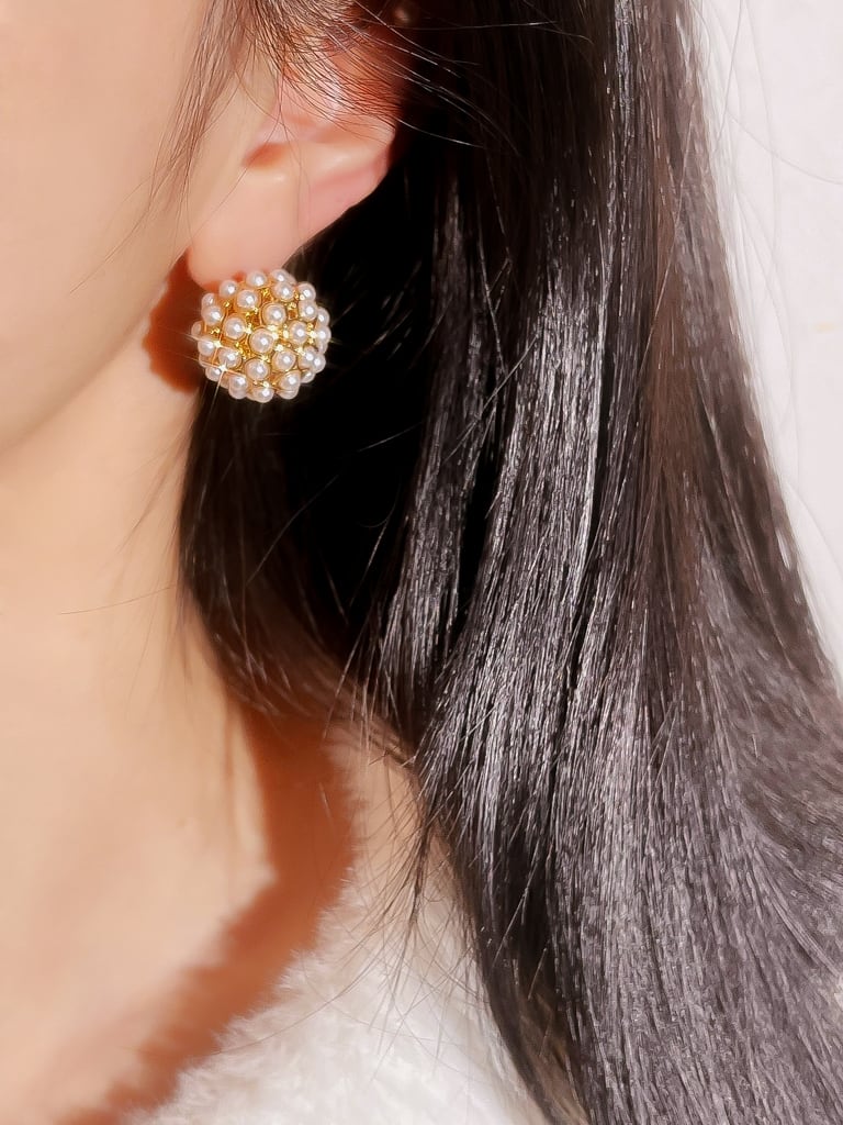 小粒パールを全体にセットしたワンランク上のデザインがあなたの耳元を華やかにする作品です♪
