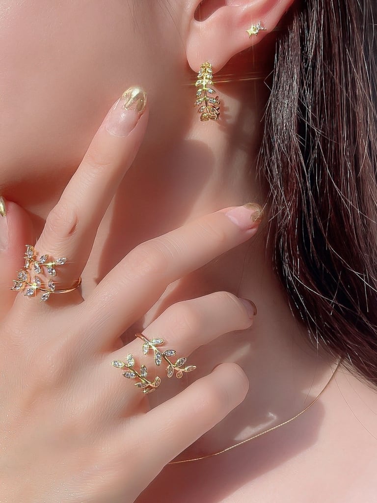 指に巻き付くようにリーフが手元をエレガントに魅せてくれる作品です♡