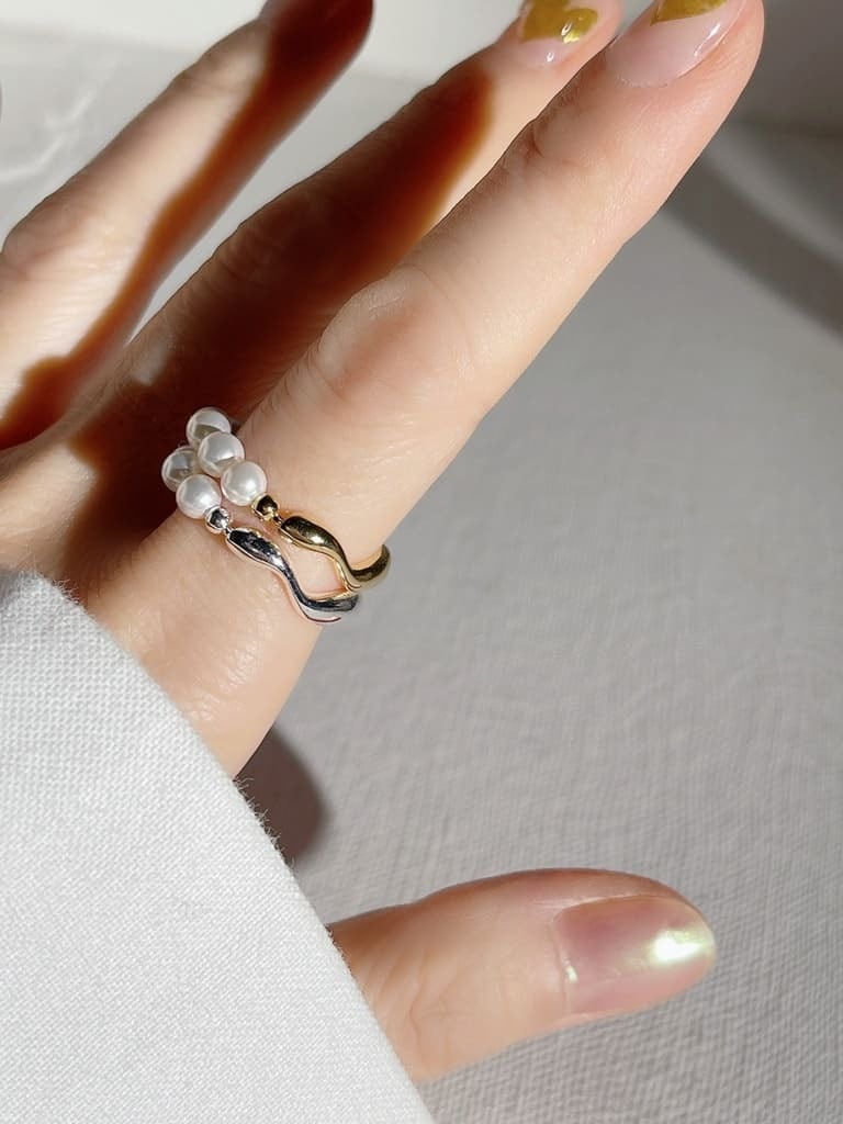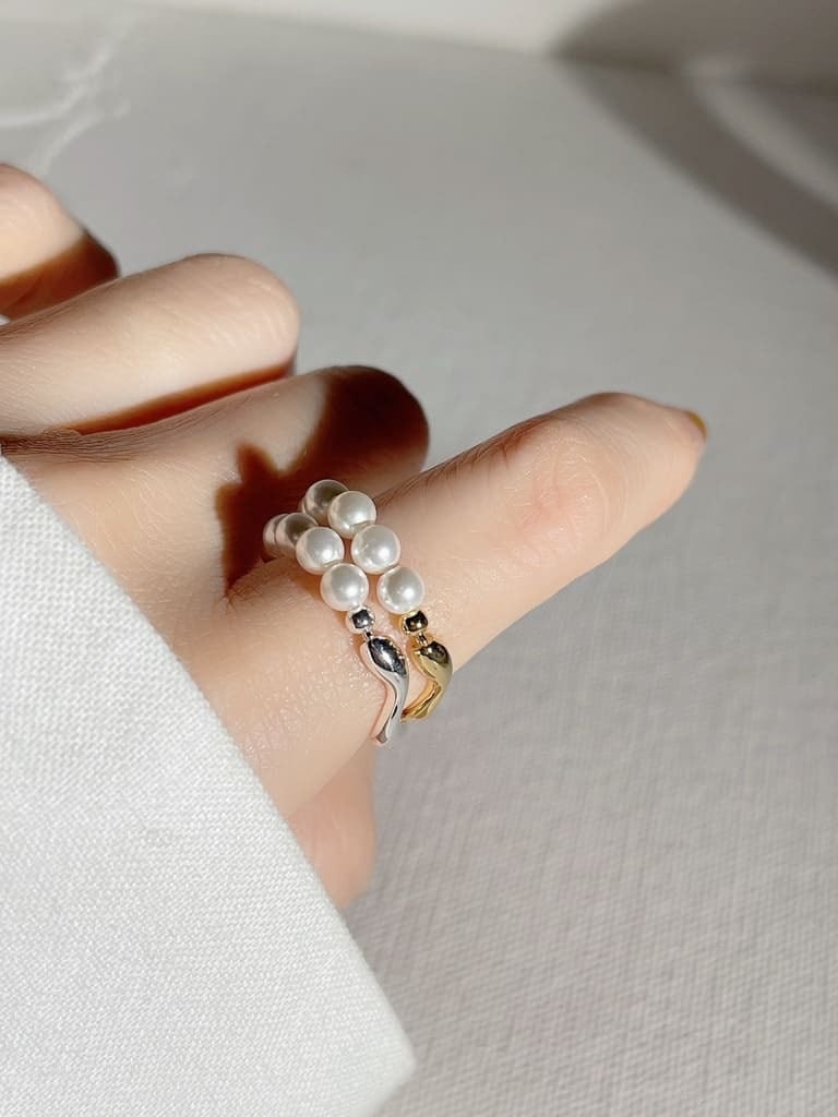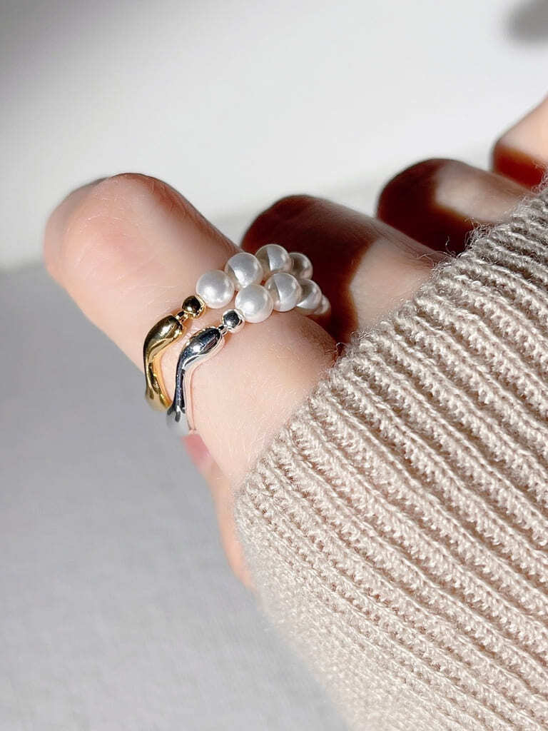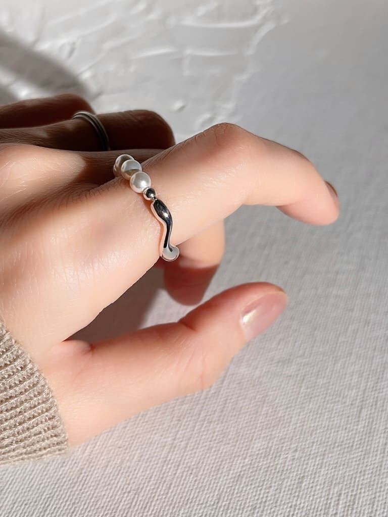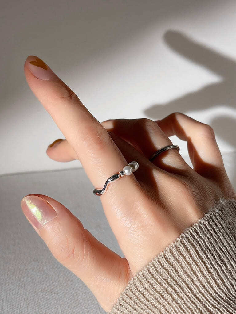 湾曲したシルバー925のリングにコーティングパールをセットした手元をエレガントに魅せてくれる作品です♡