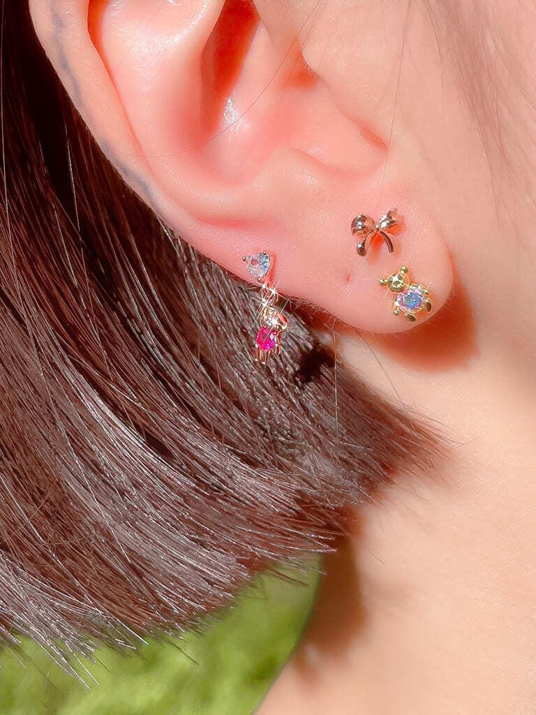 オーロラ加工されたジルコニアをテディベアがお腹でハグするような耳元を可愛らしく飾ってくれる作品です^^