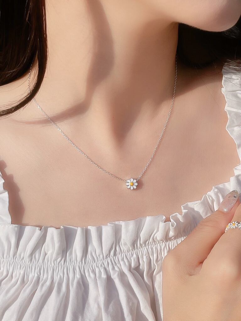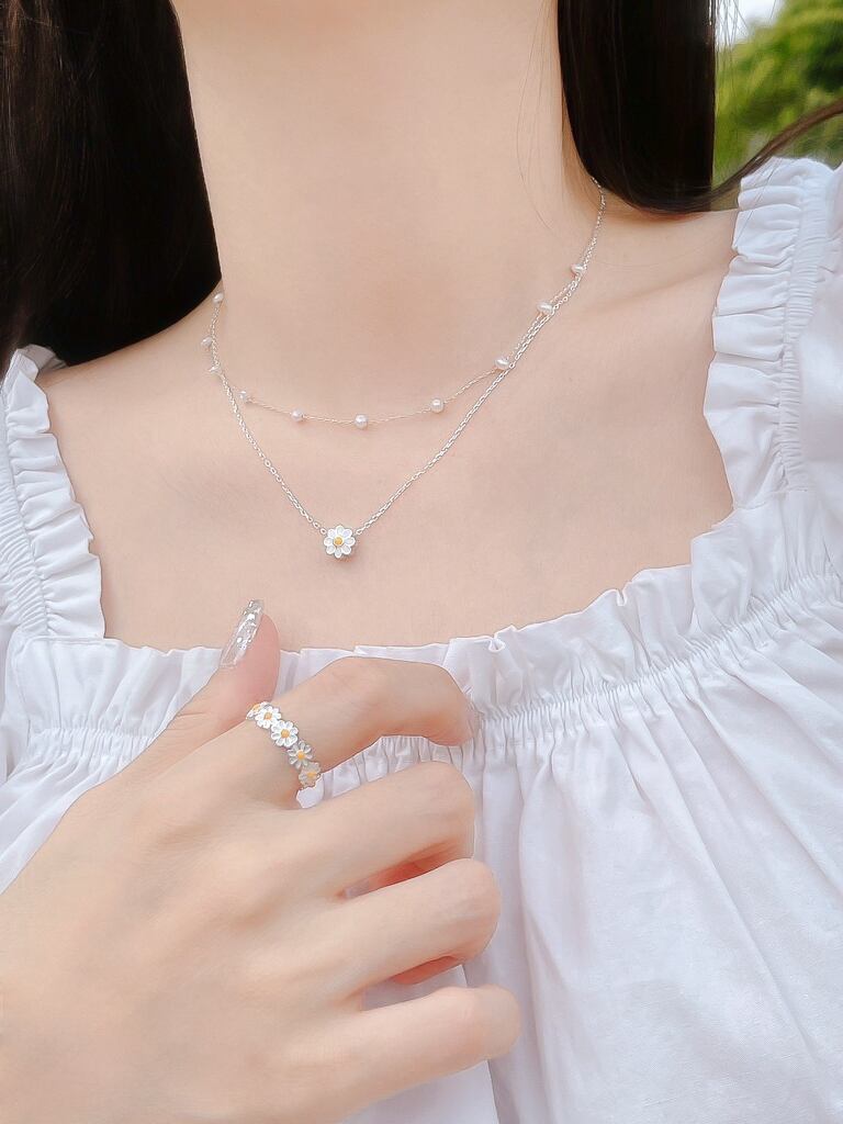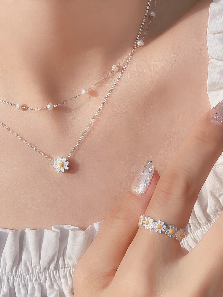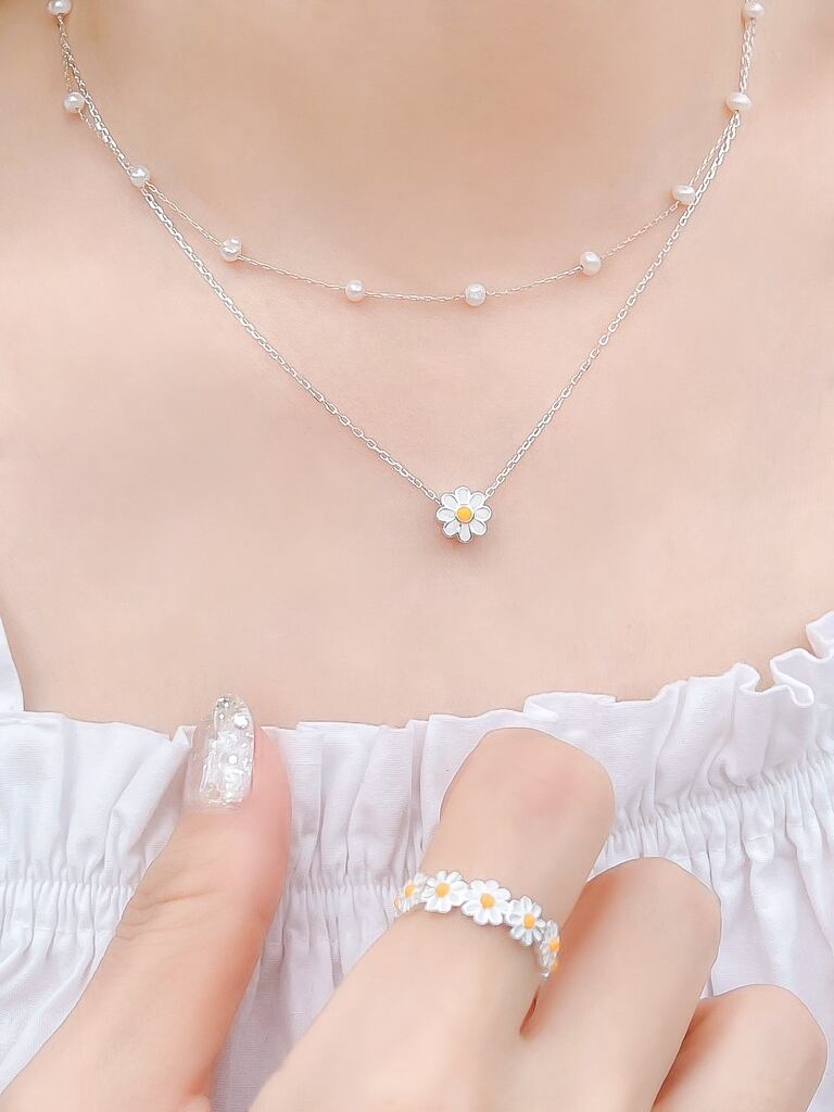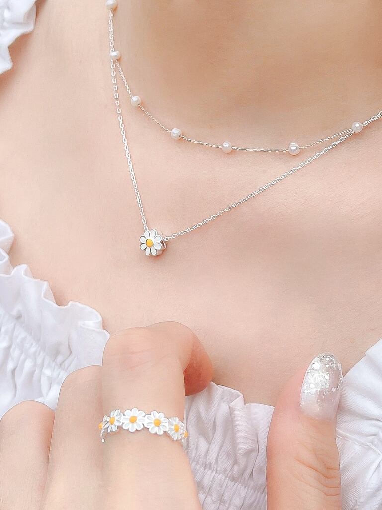Silver925素材のマーガレットモチーフのネックレスと指輪のセットです♪