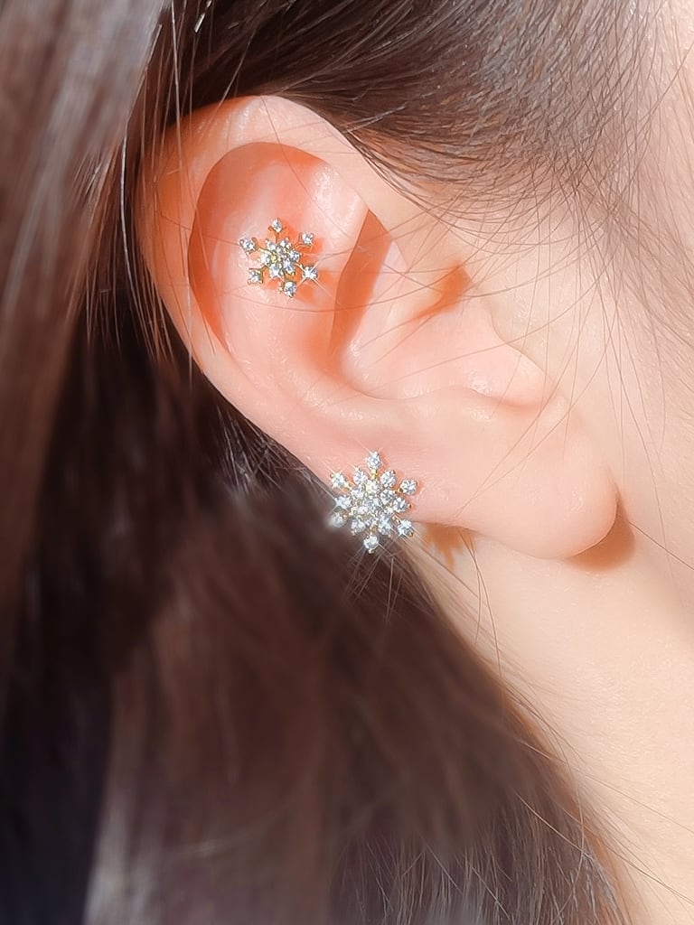 雪の結晶をモチーフにしたあなたの耳をエレガントに大人可愛く飾る作品です♪