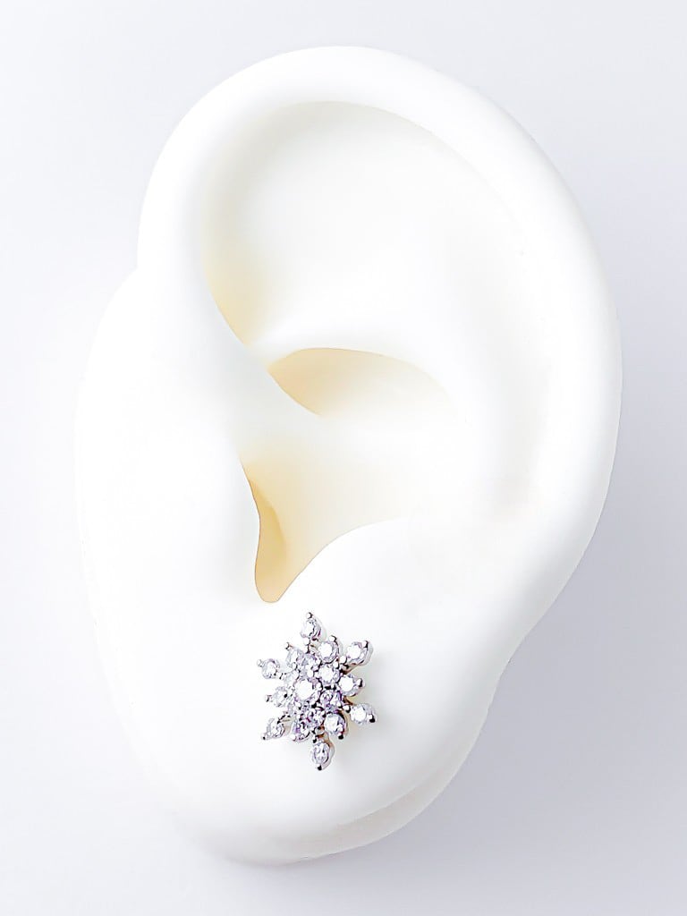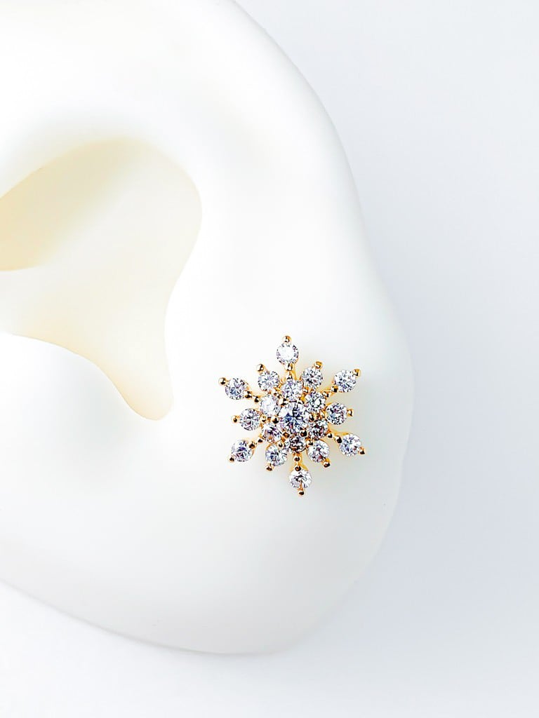 雪の結晶をモチーフにしたあなたの耳をエレガントに大人可愛く飾る作品です♪